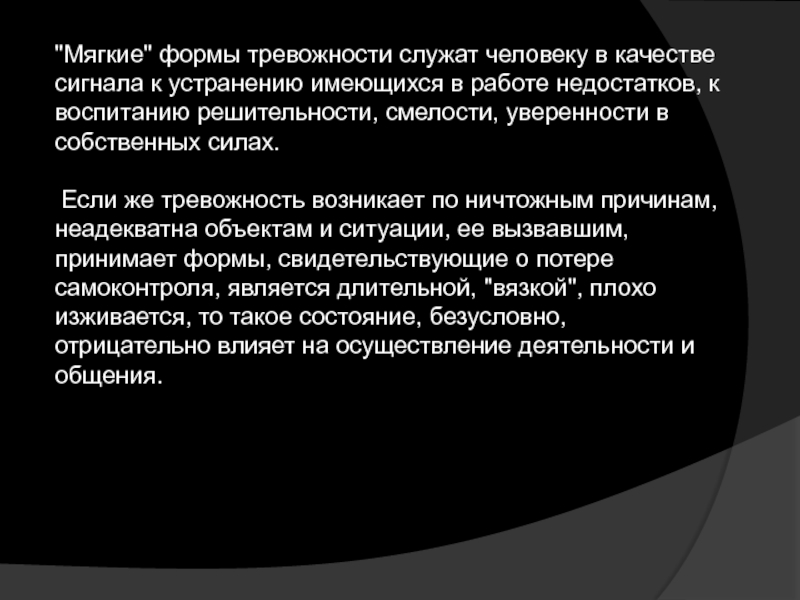 Слайд 16"Мягкие" формы тревожности служат человеку в качестве сигнала к устранению