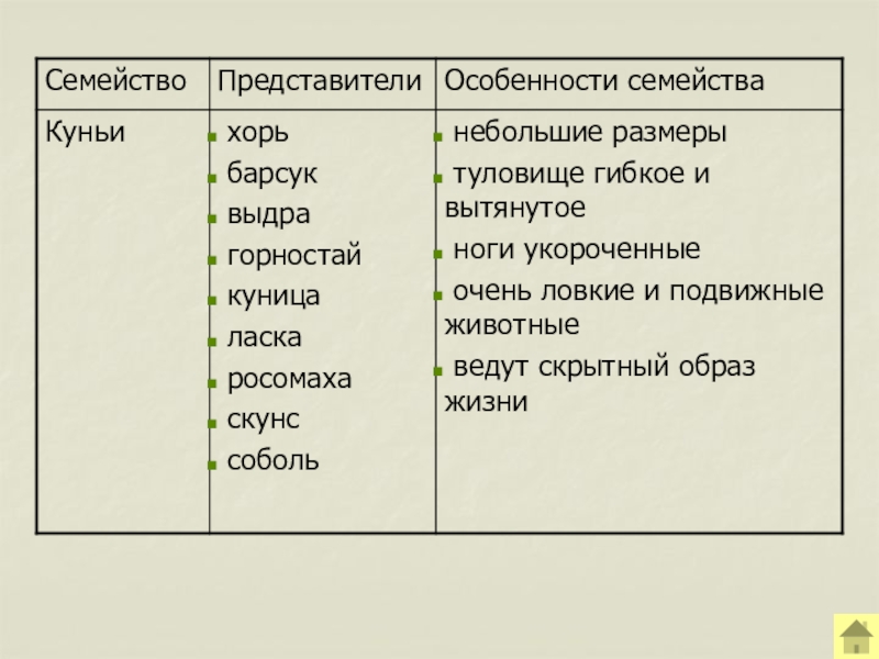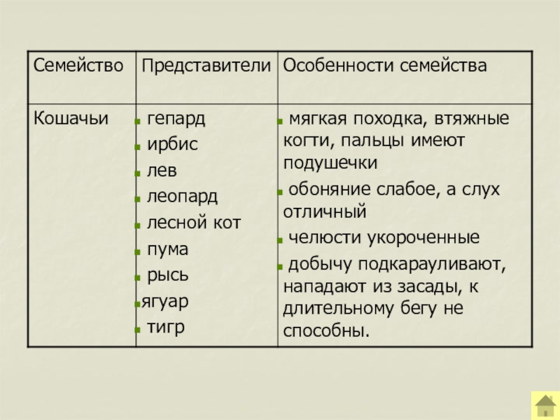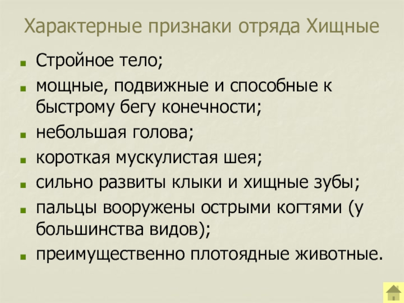 вооружены острыми когтями (у большинства видов);преимущественно плотоядные животные.