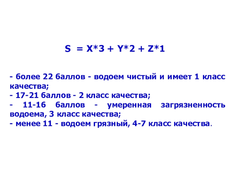 баллов - водоем чистый и имеет 1 класс качества;