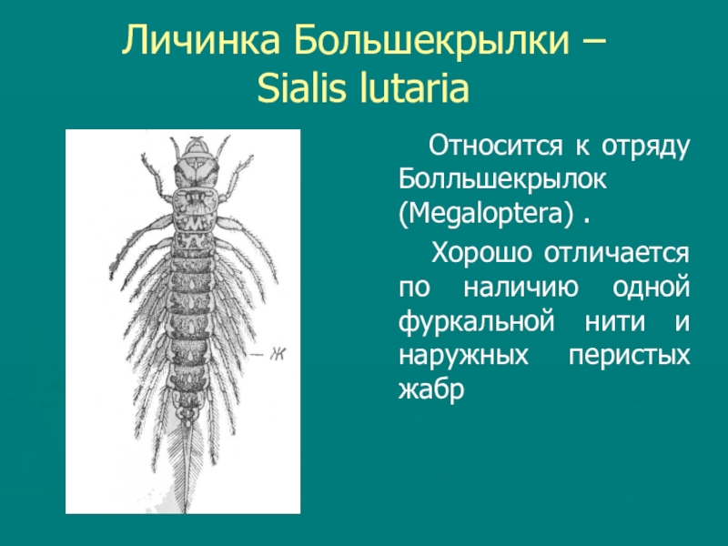 Слайд 35Личинка Большекрылки –