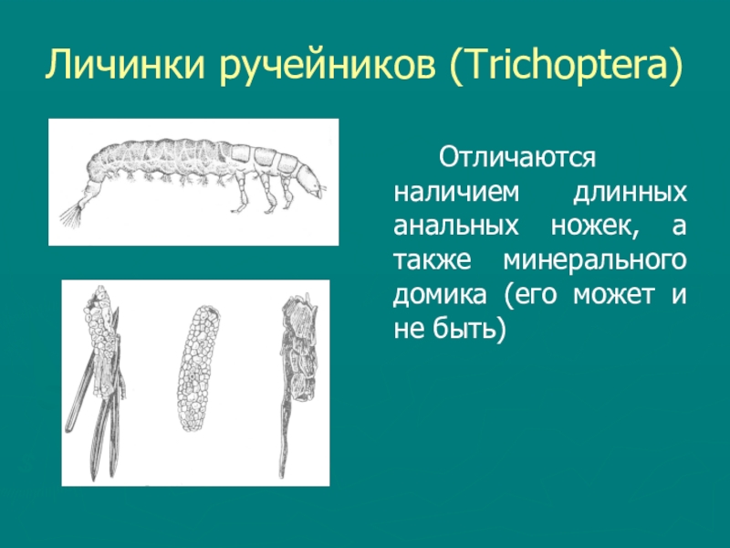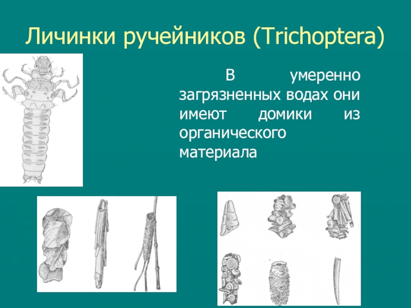 Слайд 26Личинки ручейников (Trichoptera)