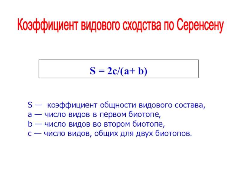 Слайд 6Коэффициент видового сходства по Серенсену