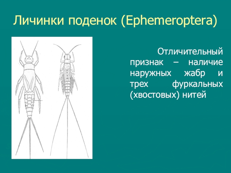 Слайд 18Личинки поденок (Ephemeroptera)