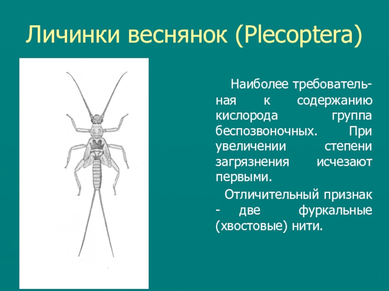 Слайд 15Личинки веснянок (Plecoptera)