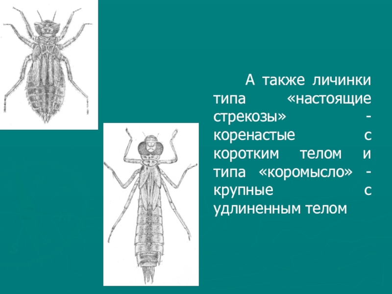 Слайд 28 А также личинки типа «настоящие стрекозы» -