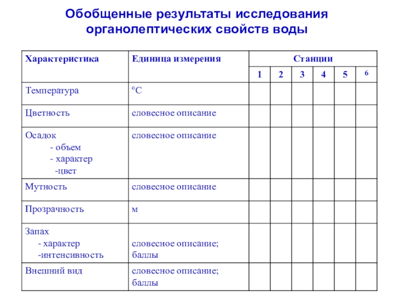 Слайд 3Обобщенные результаты исследования органолептических свойств воды