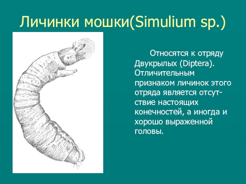Слайд 16Личинки мошки(Simulium sp.)