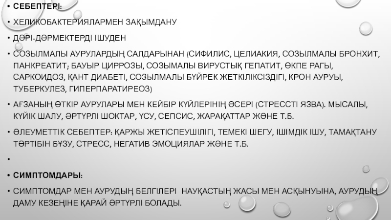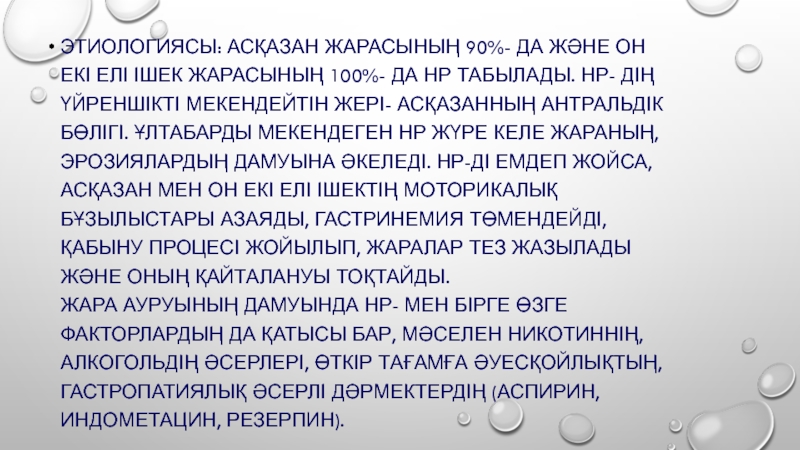 Слайд 4Этиологиясы: Асқазан жарасының 90%- да және он екі елі ішек