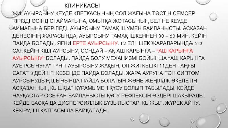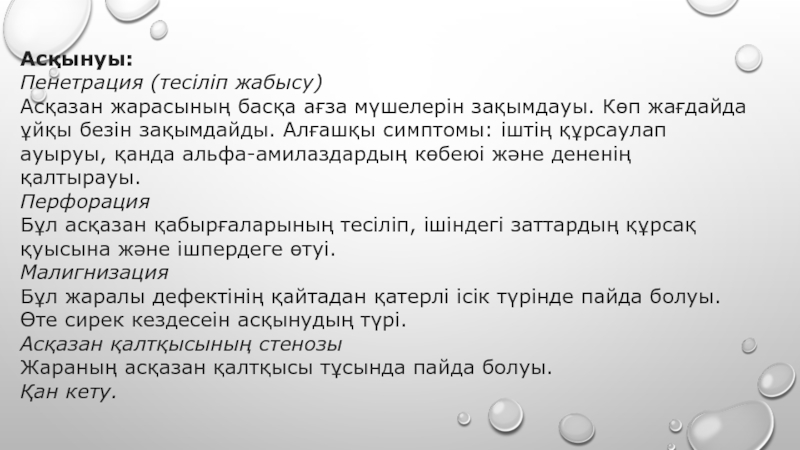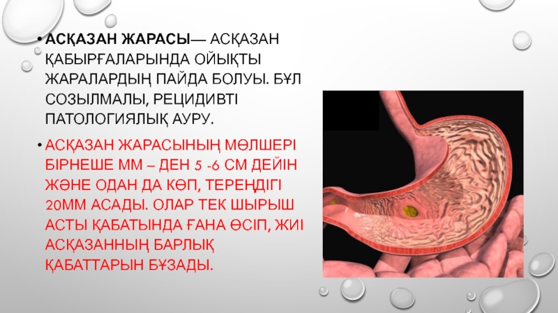 Слайд 3Асқазан жарасы— асқазан қабырғаларында ойықты жаралардың пайда болуы. Бұл созылмалы,