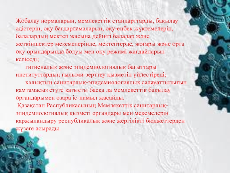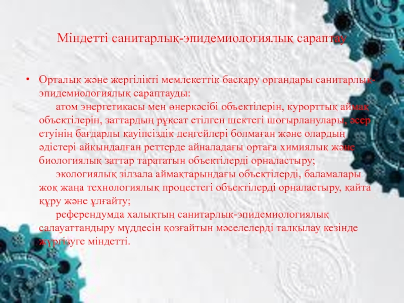 Слайд 13Мемлекеттiк санитарлық-эпидемиологиялық