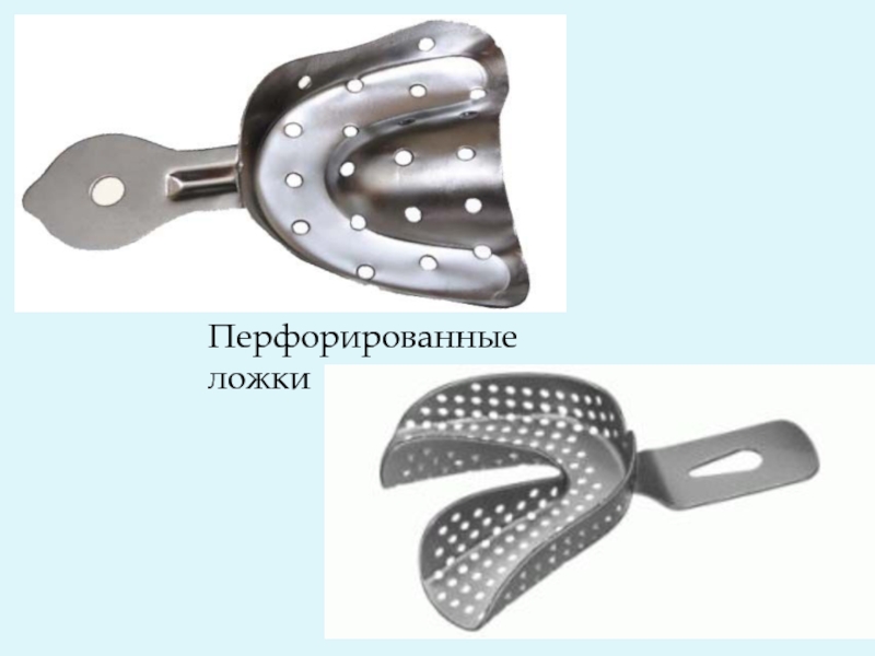 Неперфорированные ложки менее удобны в использовании, так как многие оттискные массы имеют плохое сцепление с ложкой, а перфорационные отверстия создают ретенционные (удерживающие) пункты.