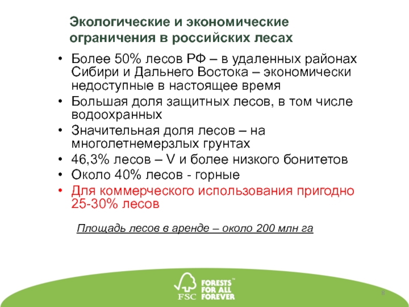 Площадь лесов в аренде – около 200 млн га