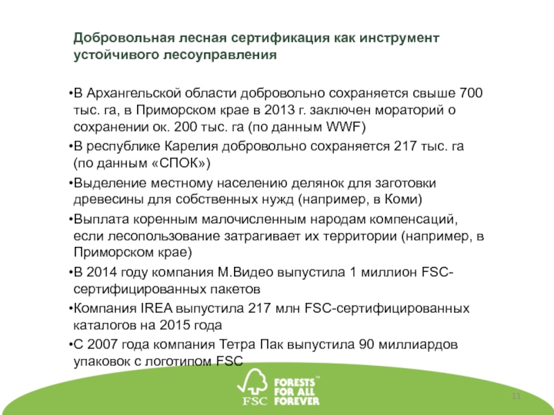 8 компаний из ТОП-10 лесопромышленных компаний России имеют сертификат FSC