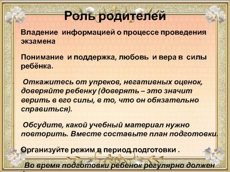 Не повышайте тревожность ребенка накануне экзаменов - это может отрицательно сказаться на результате тестирования .