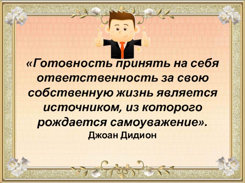 «Готовность принять на себя ответственность за свою собственную жизнь является