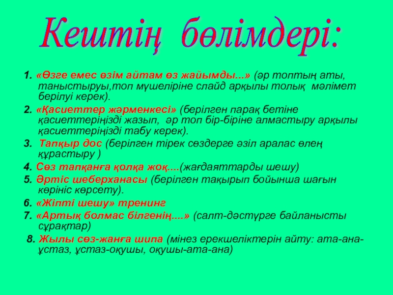 Кештің бөлімдері: