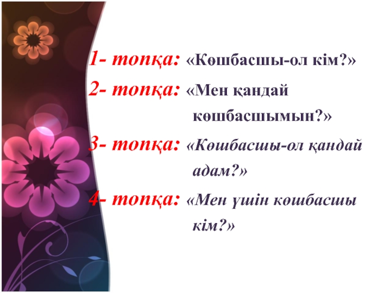 Бастамашылық бөлініс: бұндай бөлініс кезінде көшбасшылық мұғалімдерге бөлініп берілмейді, яғни көшбасшыны тағайындамайды, мұғалімдер өздері қабылдайды, сондықтан оны жоспарланған тәсілден гөрі, ерікті деп санауға толық негіз бар.