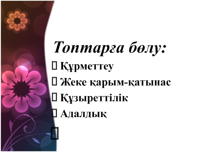 Құрметтеу: (басқаның пікірін тыңдау және бағалау)