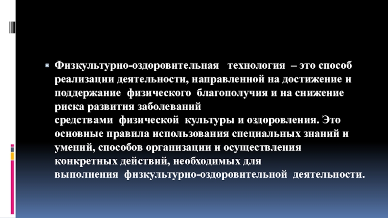 Слайд 7Физкультурно-оздоровительная   технология  – это способ реализации деятельности, направленной на