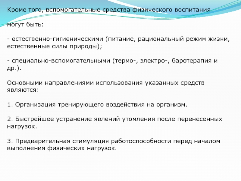 Вспомогательные средства физического воспитания – оздоровительные силы природы делятся по