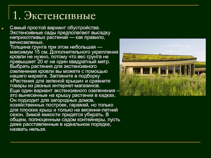 Слайд 4Виды зеленых крыш