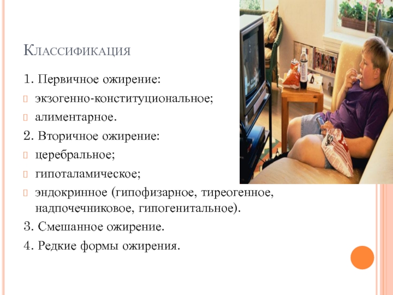 1. Первичное ожирение: