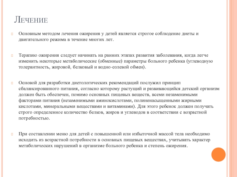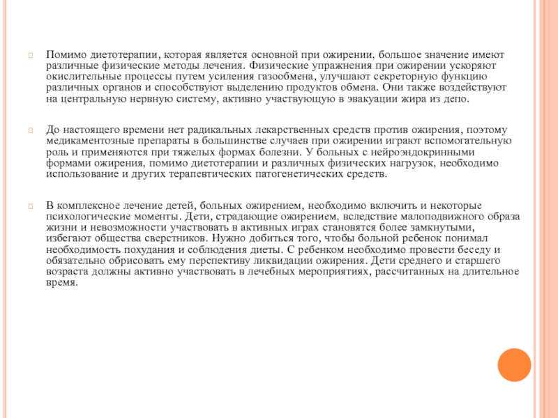 Слайд 15Помимо диетотерапии, которая является основной при ожирении, большое значение имеют