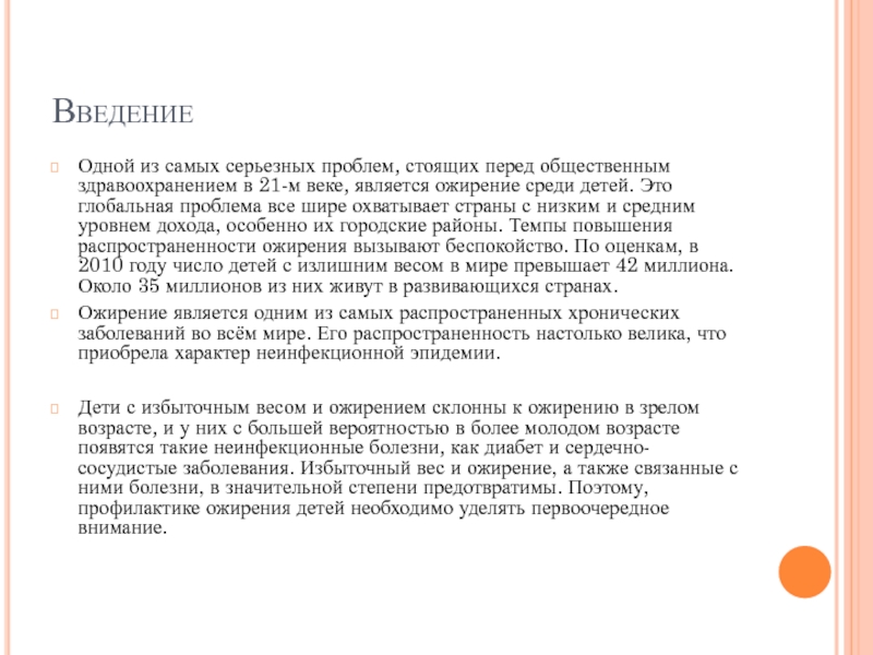 21-м веке, является ожирение среди детей. Это глобальная проблема все