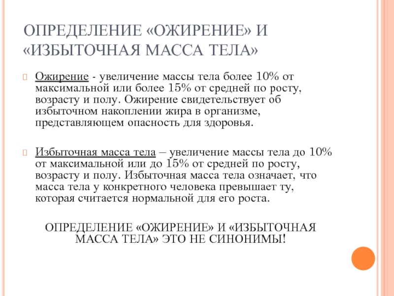 ОПРЕДЕЛЕНИЕ «ОЖИРЕНИЕ» И «ИЗБЫТОЧНАЯ МАССА ТЕЛА» ЭТО НЕ СИНОНИМЫ!