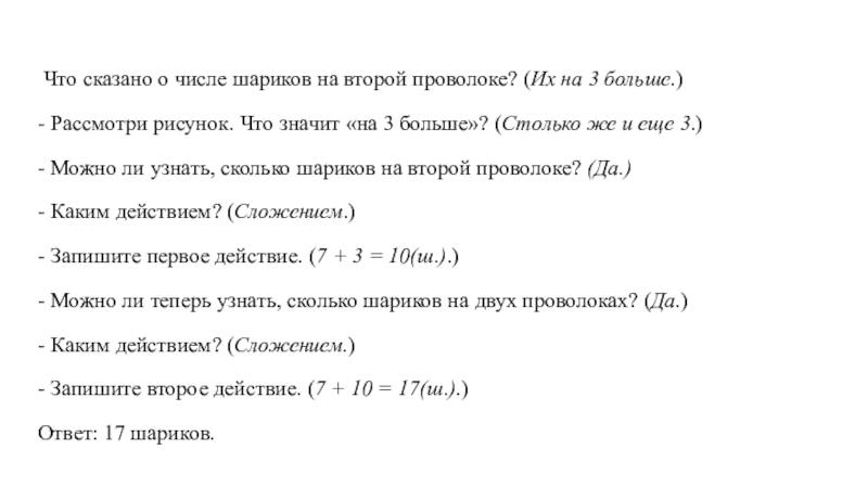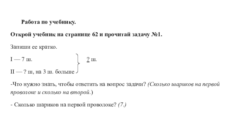 Слайд 7 Что сказано о числе шариков на второй проволоке? (Их