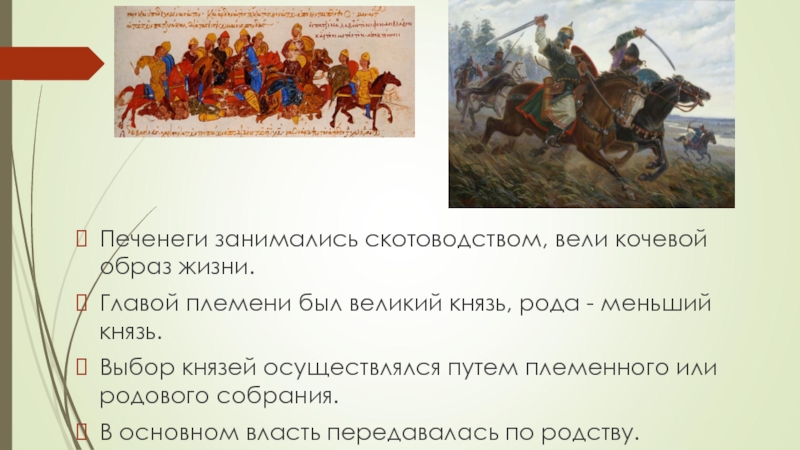 Слайд 4Печенеги занимались скотоводством, вели кочевой образ жизни.