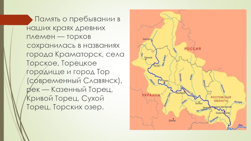 — торков сохранилась в названиях города Краматорск, села Торское, Торецкое