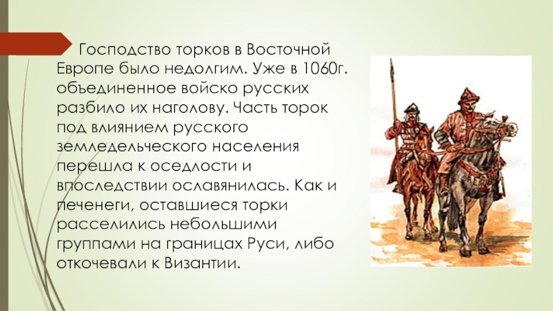 Слайд 18   Господство торков в Восточной Европе было недолгим.