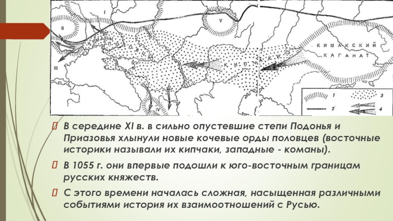 В 1055 г. они впервые подошли к юго-восточным границам русских княжеств.