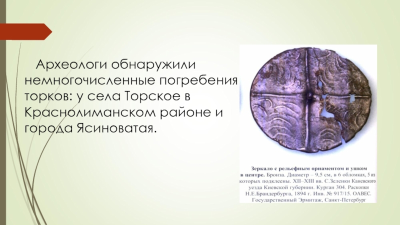 Слайд 16  Археологи обнаружили немногочисленные погребения торков: у села Торское