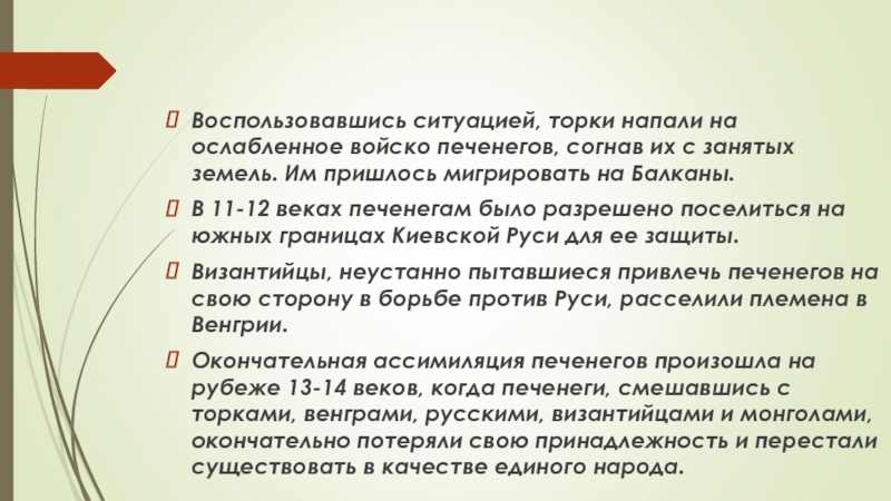 Слайд 7Воспользовавшись ситуацией, торки напали на ослабленное войско печенегов, согнав их