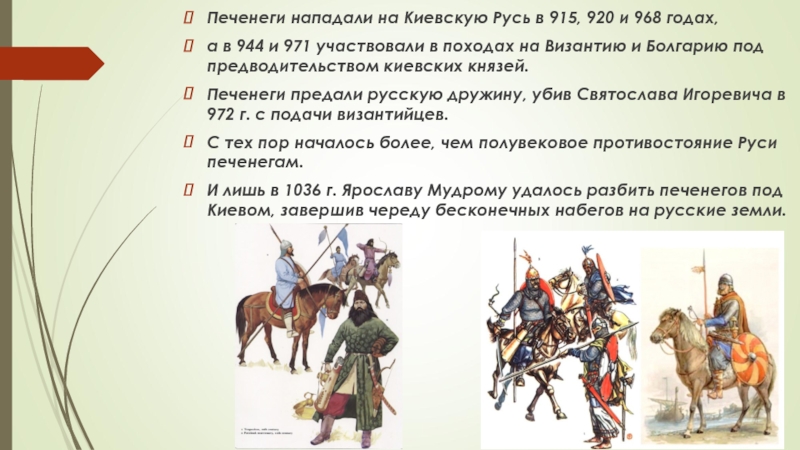 Слайд 6Печенеги нападали на Киевскую Русь в 915, 920 и 968