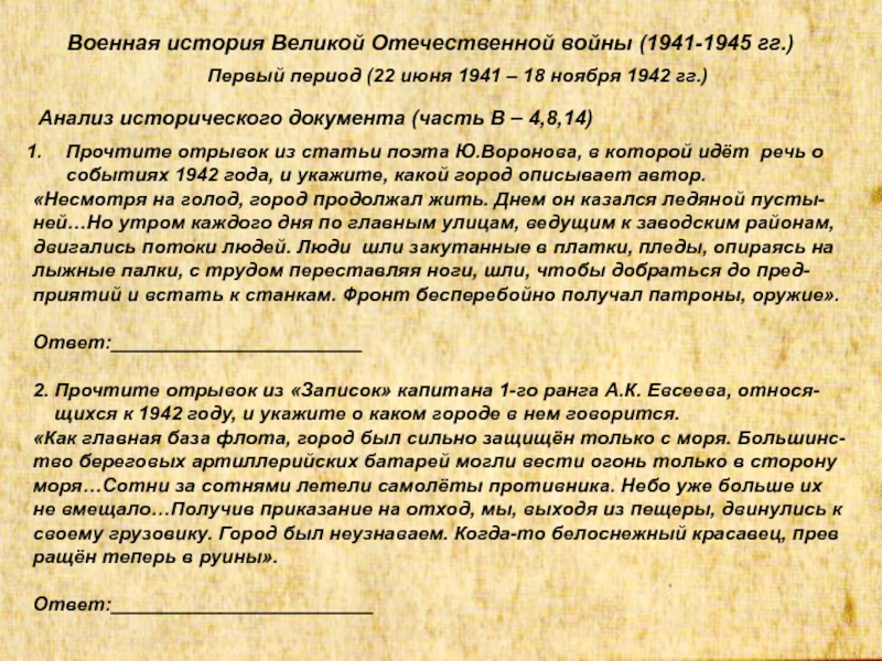 щихся к 1942 году, и укажите о каком городе в нем говорится.