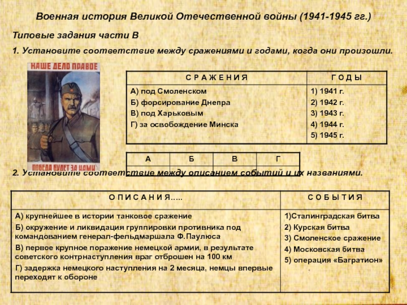 Слайд 8Военная история Великой Отечественной войны в части С