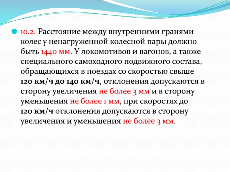 Слайд 410.2. Расстояние между внутренними гранями колес у ненагруженной колесной пары