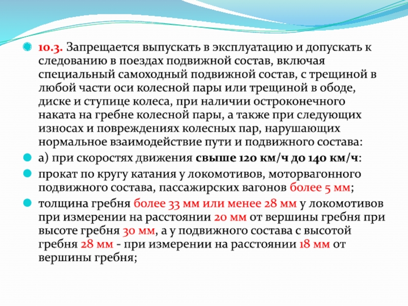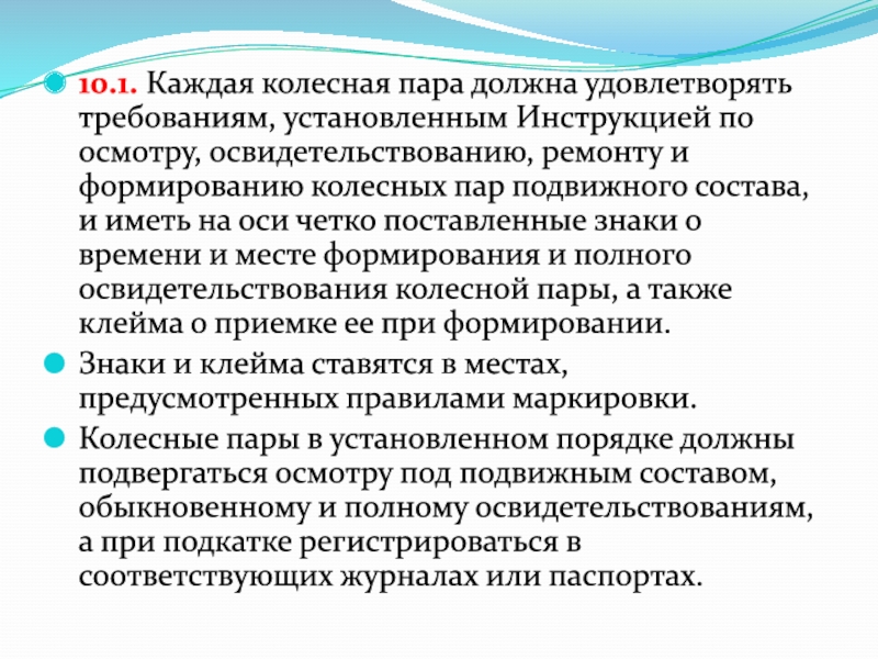 Слайд 310.1. Каждая колесная пара должна удовлетворять требованиям, установленным Инструкцией по