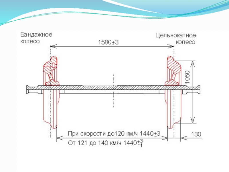 в любой части оси колесной пары или трещиной в ободе, диске и ступице колеса, при наличии остроконечного наката на гребне колесной пары, а также при следующих износах и повреждениях колесных пар, нарушающих нормальное взаимодействие пути и подвижного состава: