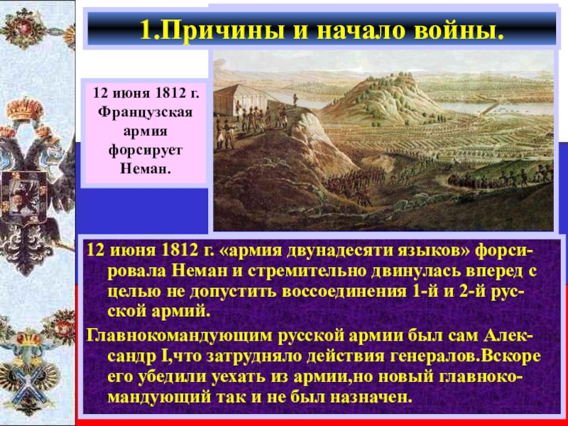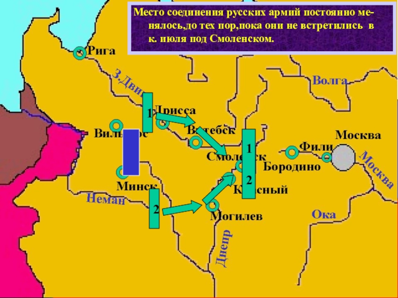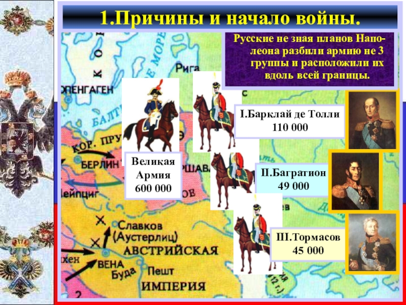 Русские не зная планов Напо-леона разбили армию не 3 группы и расположили их вдоль всей границы.