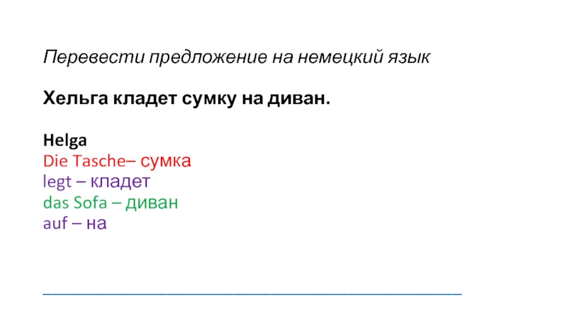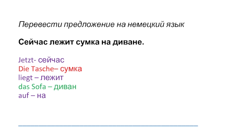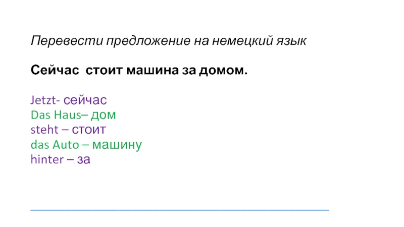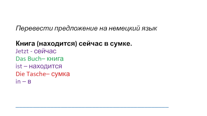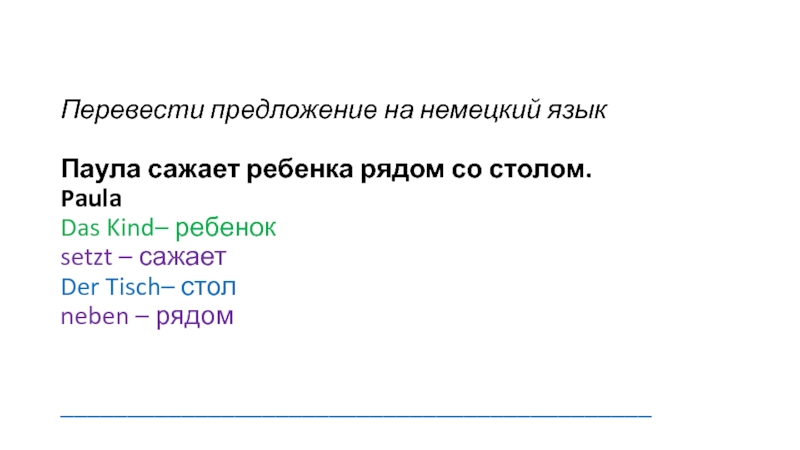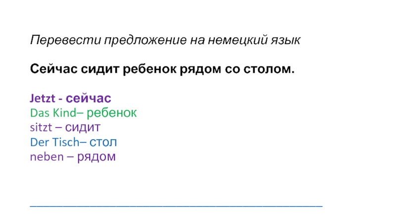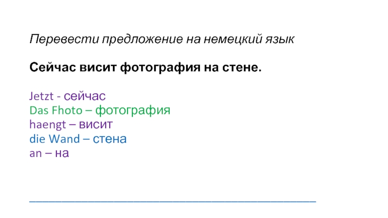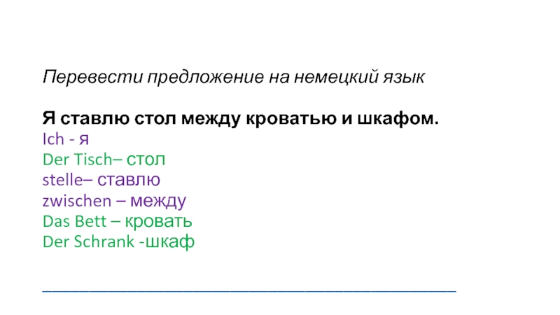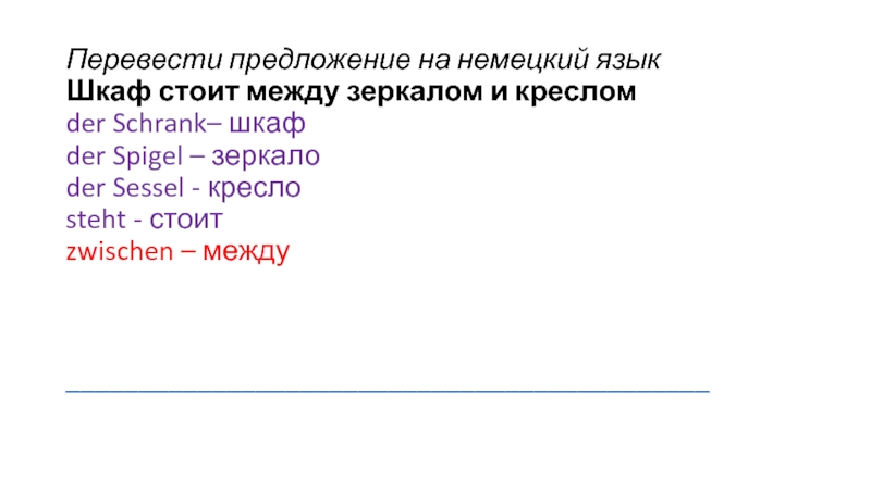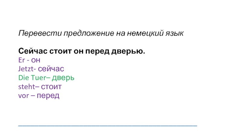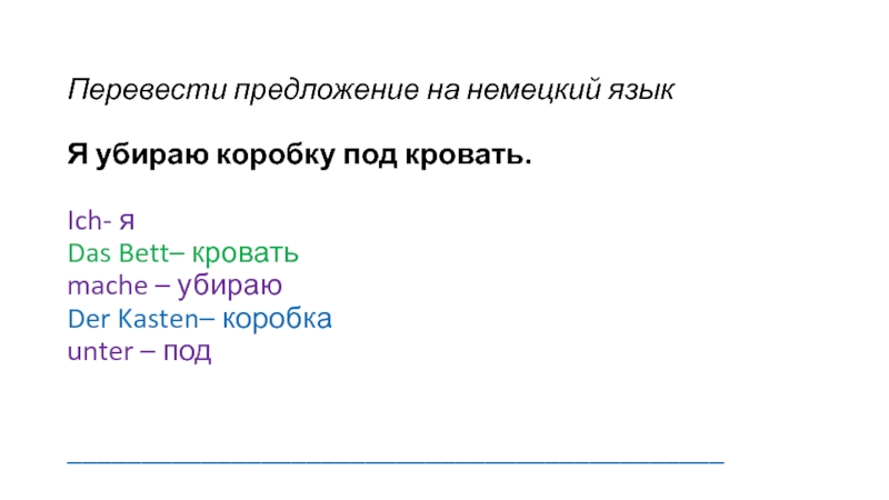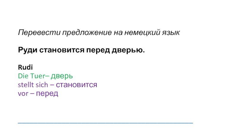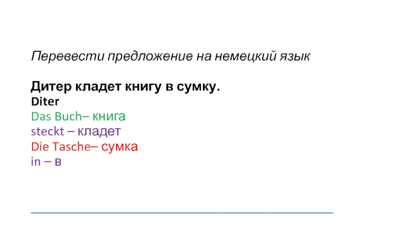 Слайд 10Перевести предложение на немецкий язык