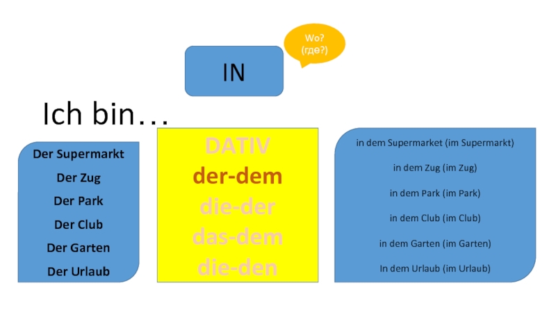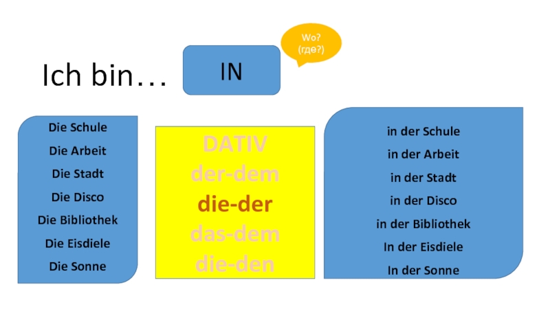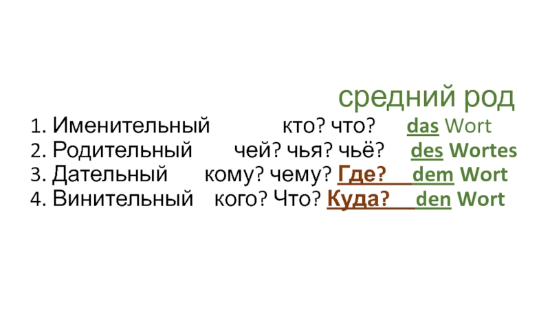 3. Дательный кому? чему? Где? dem Wort