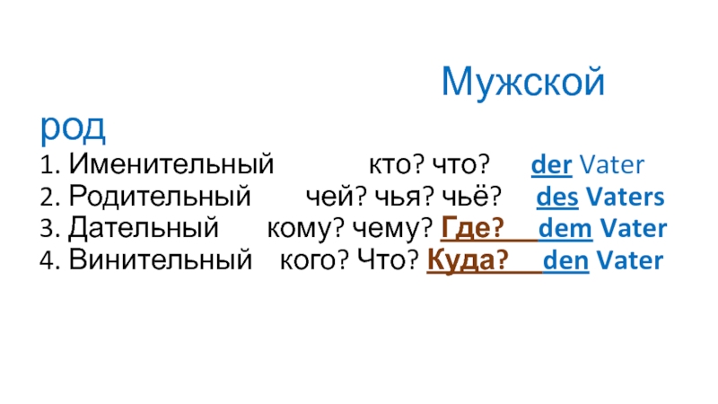 2. Родительный чей? чья? чьё? des Vaters