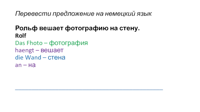 Слайд 14Перевести предложение на немецкий язык