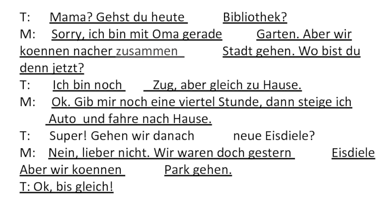 Слайд 46T: Mama? Gehst du heute in die Bibliothek?