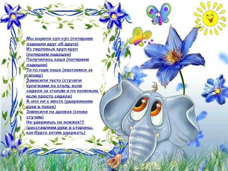 ладоней. Взрослый за время произнесения этой строчки вполне может «порубить капусту» от одного края стола до другого и обратно, расстояние между краями примерно 60 см. Детям достаточно рубить на одном месте.
