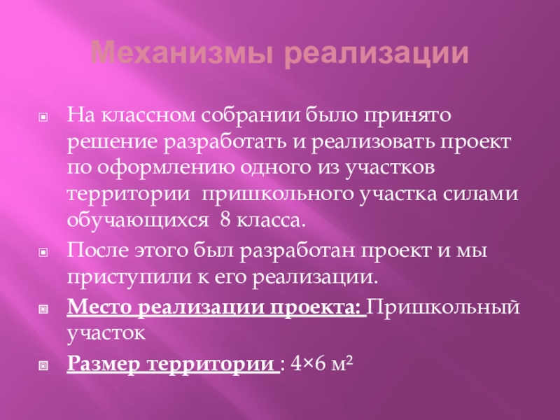 Место реализации проекта: Пришкольный участок